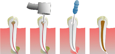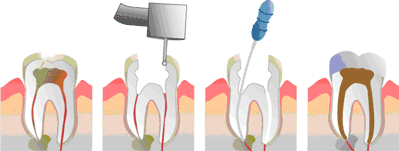 Una caries profunda o una lesión en la superficie del diente puede ocasionar graves daños e infecciones en los nervios y vasos de la pulpa. La endodoncia o tratamiento de conductos consiste en limpiar la cámara pulpar, así como los conductos infectados y colocar después un material de obturación para sellar esos espacios que fueron previamente limpiados y desinfectados.